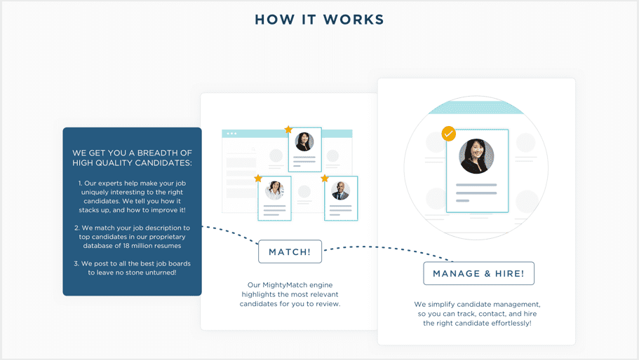 - Their call-to-action, which was “Post your job to 100s of job sites with a single click” initially sounded good to recruiters. However, they received at times thousands of resumes, 90% of which were from completely unqualified candidates. Instead, they wanted maybe 50 to 100 resumes from highly qualified candidates.