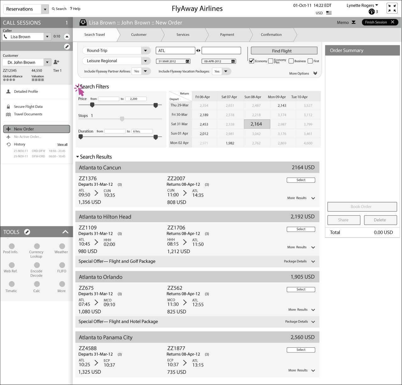 Karen closes the filters and matrix, because Lisa Brown likes the price available on her preferred date.