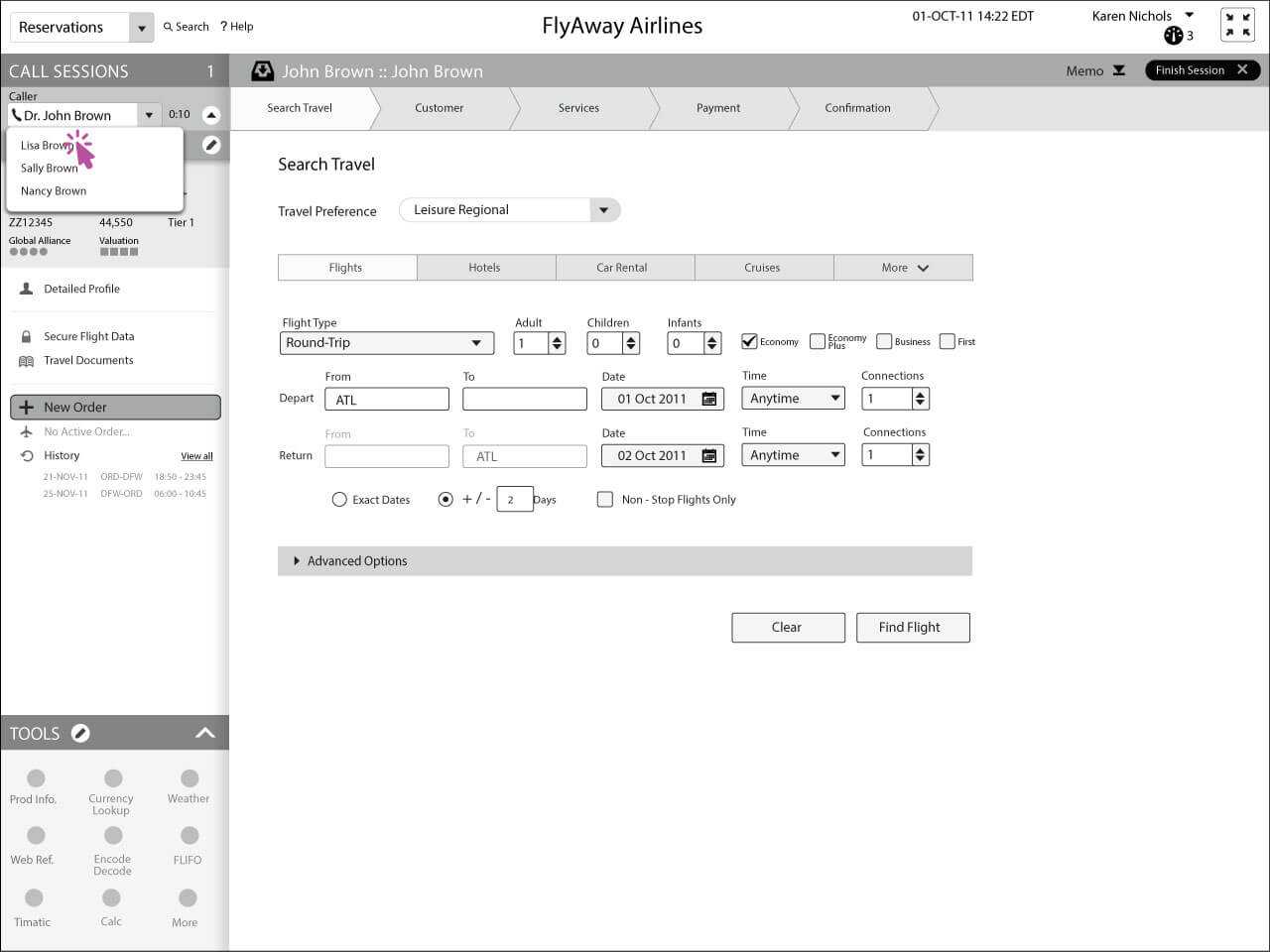 - Karen Nichols and Lynette Rogers –Airline call-center agents, who use the system to create bookings.
